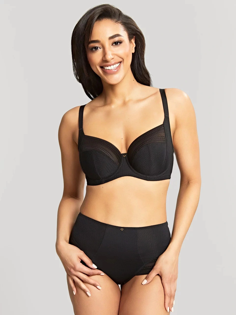 Luxusní dámská podprsenka, podšitá, nevyztužená, s kosticí. Zapínání na zádech na tři háčky. Posouvací ramínka.