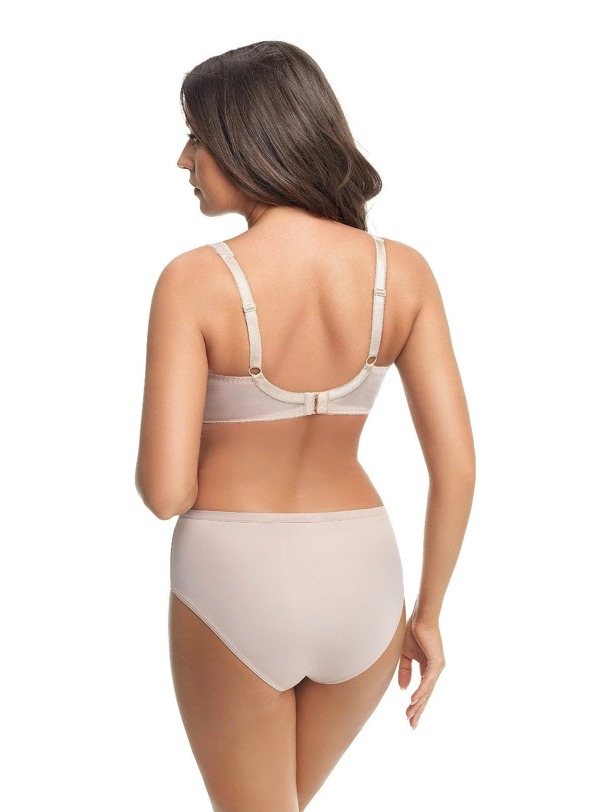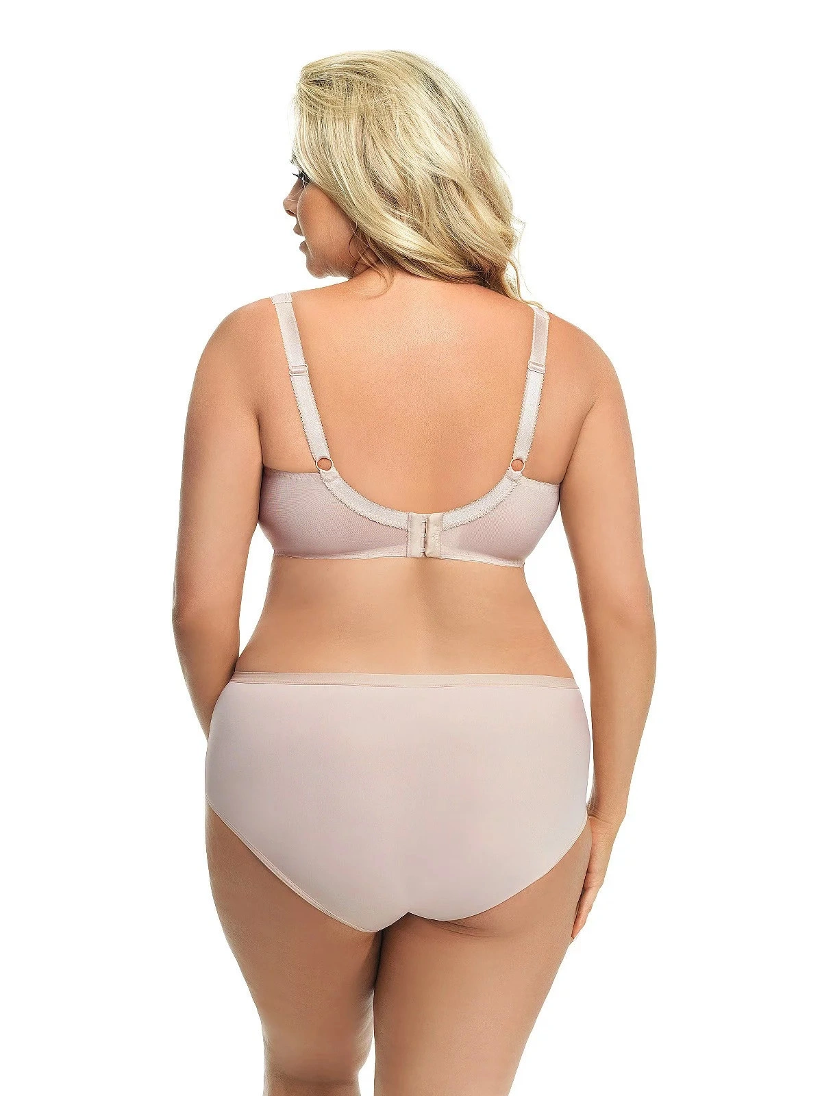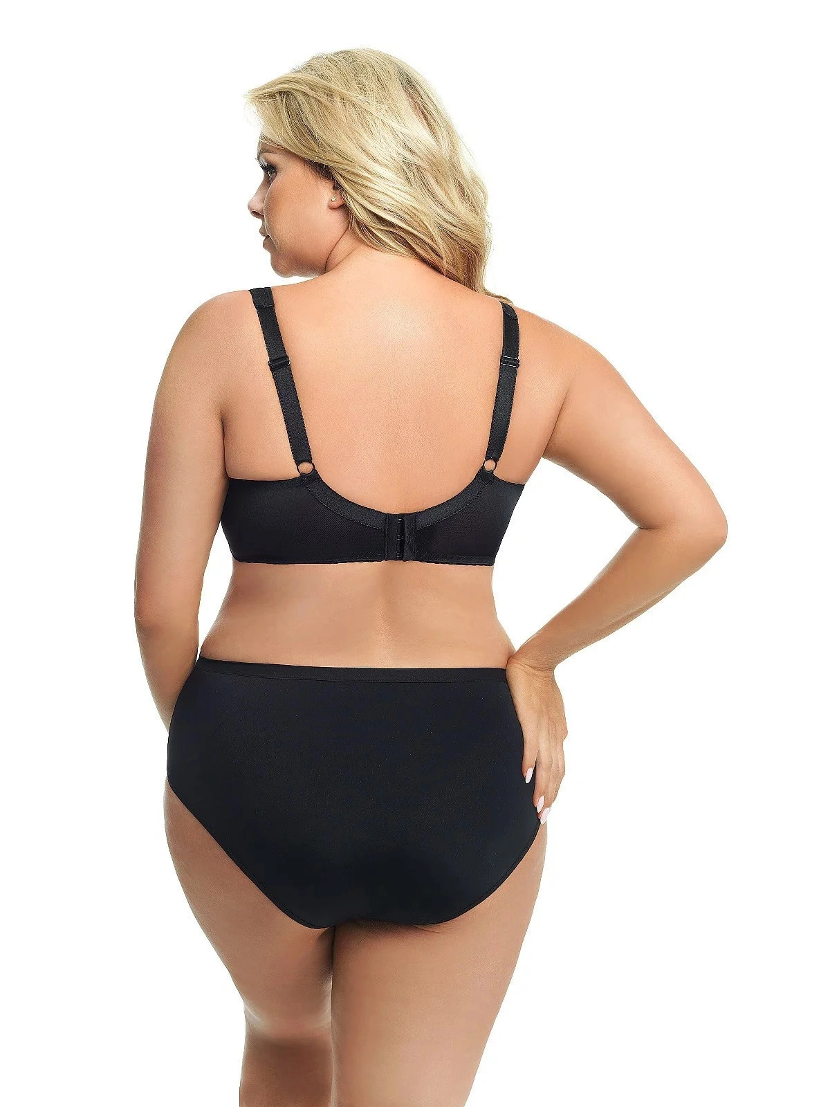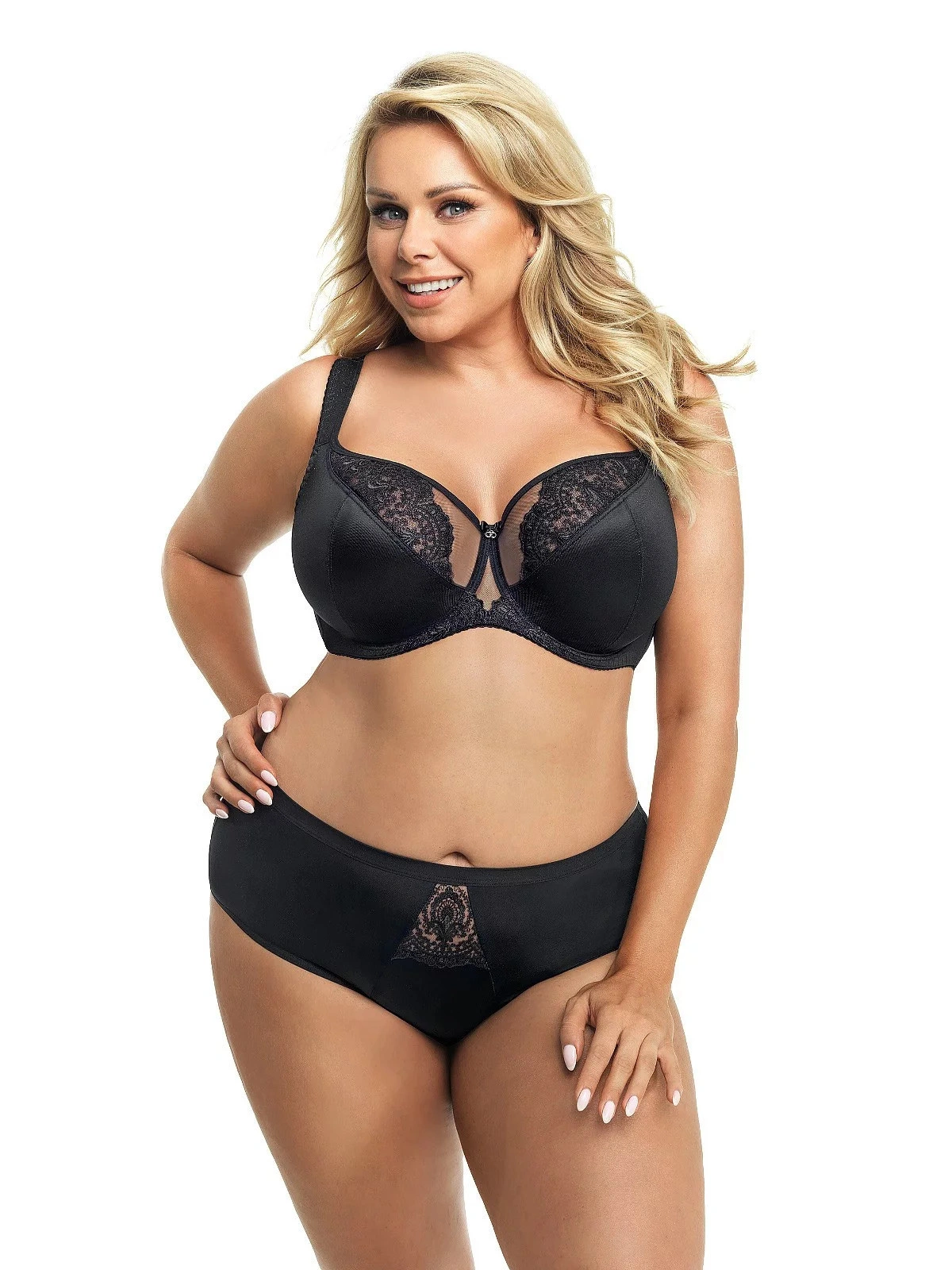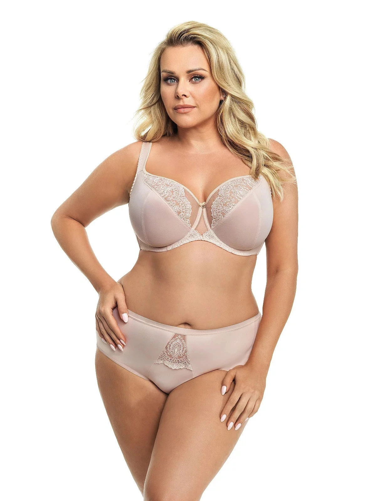 Podprsenka má měkké košíčky s kosticemi. V horní linii modelu je jemná síťovina ozdobená výšivkou. V místě spojení košíčků je saténová mašlička. Boky modelu jsou zpevněné svislými kosticemi a jsou ušité z pružné lycrové tkaniny, která se při nošení nevytahuje. Široká pohodlná ramínka jsou podšitá látkou. Délku ramínek je možné nastavit. Model ideálně nadnáší poprsí a poskytuje mu oporu.