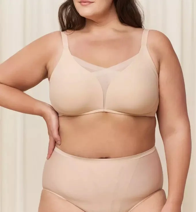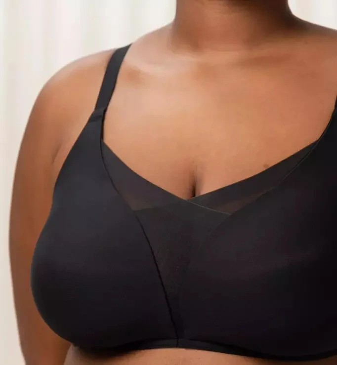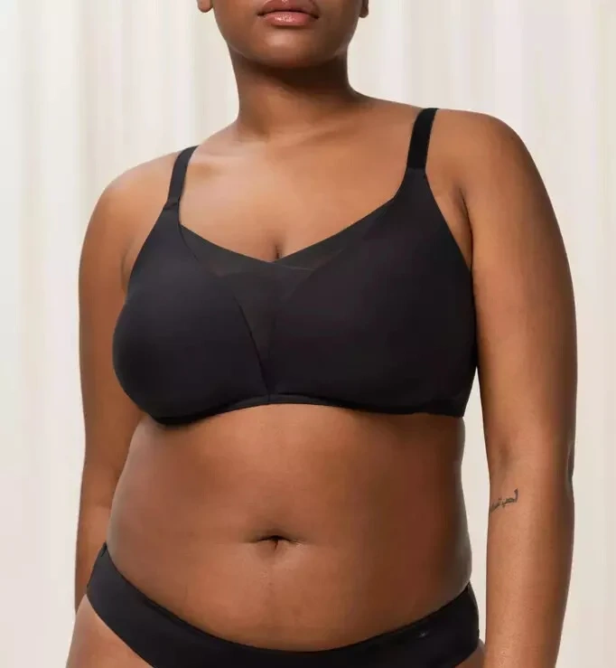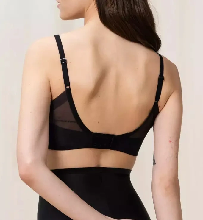 - Překřížená vrstvená síťovina, která utváří hluboký výstřih do V