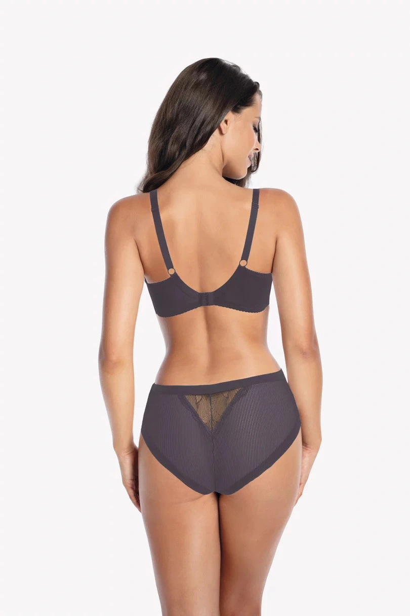 Spodní část košíčků je vyrobená ze žebrovaného mikrovlákna. Vrchní část košíčků tvoří krajka. Ramínka není možné odepnout. Model dokonale nadnáší poprsí a vytváří pěkný dekolt.