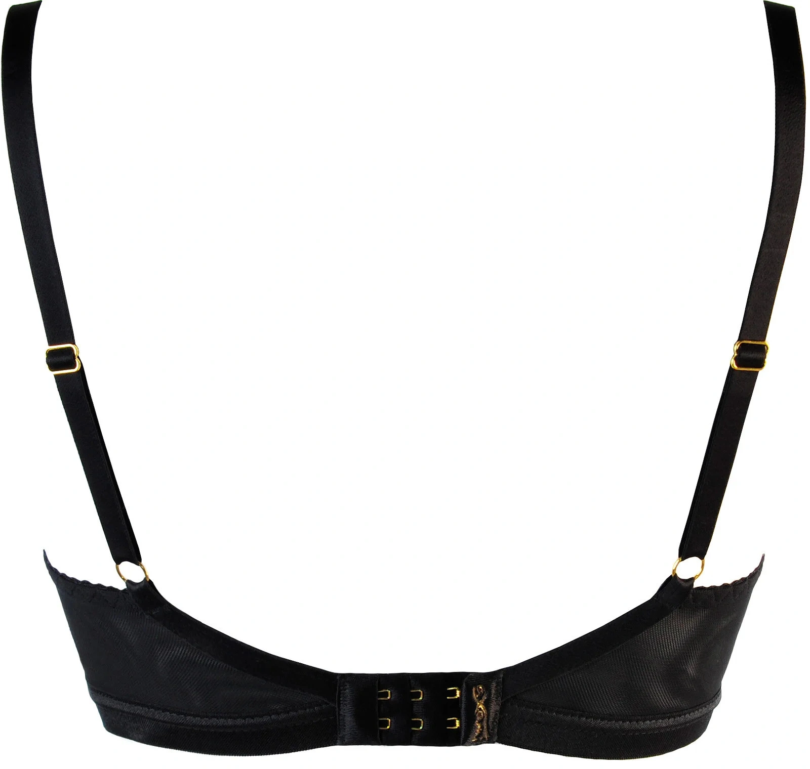 Vstupte do říše snů a romantiky, objevte náš nový návrh měkké podprsenky V-10711, kombinace jemného béžového tylu na košíčcích s bohatě zdobenou černou krajkou je model, který vás jistě nadchne. Ve spodní linii podprsenky je elastický pás, který zajišťuje stabilitu a pohodlí při nošení. Podprsenka se zapíná na dvojitý háček, doplňky ve zlaté barvě.