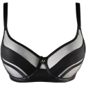 | Nový model měkké podprsenky je klasickým i netradičním návrhem, díky čemuž se hodí jak pro zvláštní příležitosti, tak pro každodenní nošení. Podprsenka je mimořádně pohodlná a stabilní a poskytuje celodenní pohodlí. Její měkké košíčky jsou vyrobeny ze stabilního tylu, který udržuje tvar prsou. Zadní část podprsenky je vyrobena z pracovního a elastického béžového tylu, který poskytuje dodatečnou pružnost. Překřížení zadní části s černými saténovými ramínky různé šířky vytváří jedinečný vzor, který dodává stylingu osobitý charakter. |