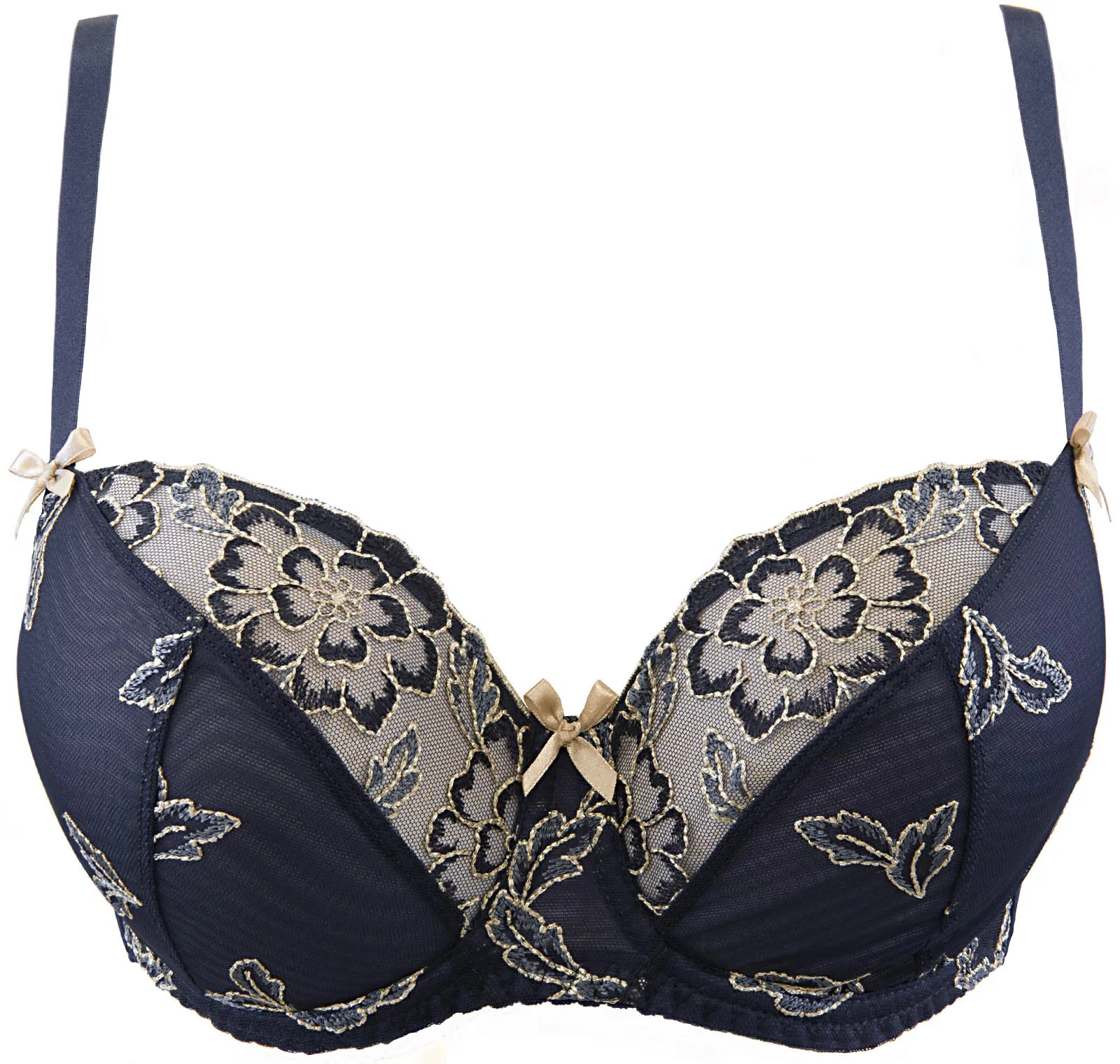 Měkká, okouzlující podprsenka zdobená zlatomodrou třpytivou výšivkou je nezapomenutelným návrhem připomínajícím osvětlenou hvězdnou oblohu, která obepíná poprsí pro pohodlí a ultra komfort . Nastavitelná ramínka a dvouřadové zapínání pro dokonalé přizpůsobení.doplňte svůj komplet o krásné krajkové kalhotky V-9343.