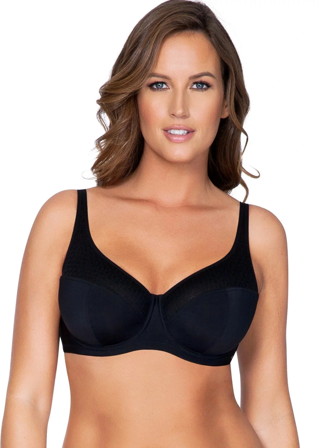 Unlined Wire podprsenka Nevyztužená podprsenka s kosticemi od americké značky PARFAIT. Tato podprsenka má košíček střižený ze tří částí, má vysoký střed, pružnou a výborně zpracovanou dekoltovou část a obvod dostatečně pevný a široký, což jsou atributy, které z ní tvoří velmi dobře fungující celodenní model i pro opravdu velké poprsí. Ramínka vychází z dekoltové části a za přechodem do zádové části se mění v materiál s mírným leskem, jsou nastavitelná a dostatečně široká. Design v černé barvě je velmi decentní a jemný, kombinace s geometrickou krajkou působí elegantní zdobnost. Materiálové složení: 84% Nylon 16% Spandex
