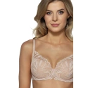 Dámská podprsenka 2104 Yasemin beige AVA - béžová barva - typ push up - krajkové košíčky podšité béžovou látkou - boční části z hladkého mikrovlákna - neodepínatelná ramínka - zapínání na dva nebo tři háčky s třístupňovým nastavením