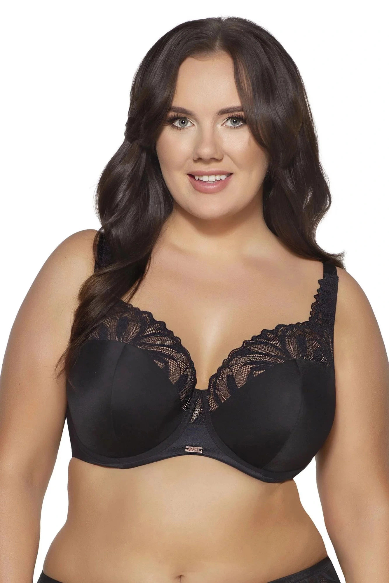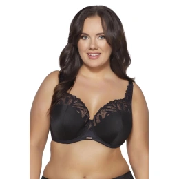 Dámská podprsenka 2105 Yasemin black AVA - černá barva - typ semi soft - z hladkého mikrovlákna - horní část košíčků zdobená krajkou - vyztužená kosticemi - ramínka posuvná a neodepínatelná - zapínání na dva nebo tři háčky s třístupňovým nastavením