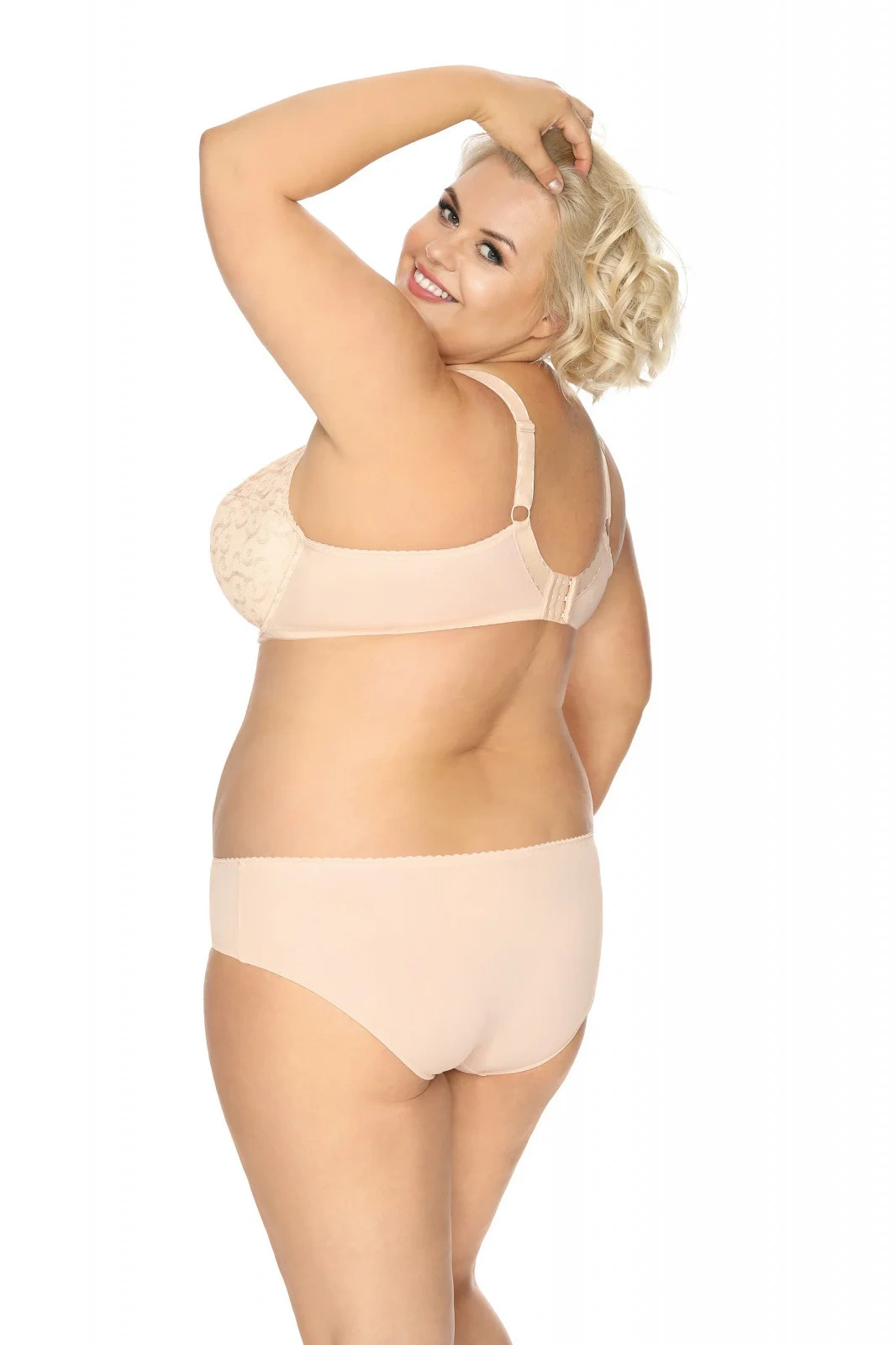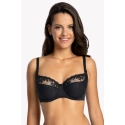 Polovyztužená dámská podprsenka, která je vyrobená z jemné tylové síťoviny ozdobené výšivkou.