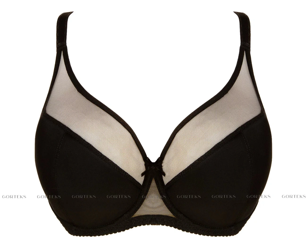 - Třídílné košíčky, spodní část košíčků z tenké korzetové pěny potažené hladkým úpletem, vrchní část - celá z elastického tylu,