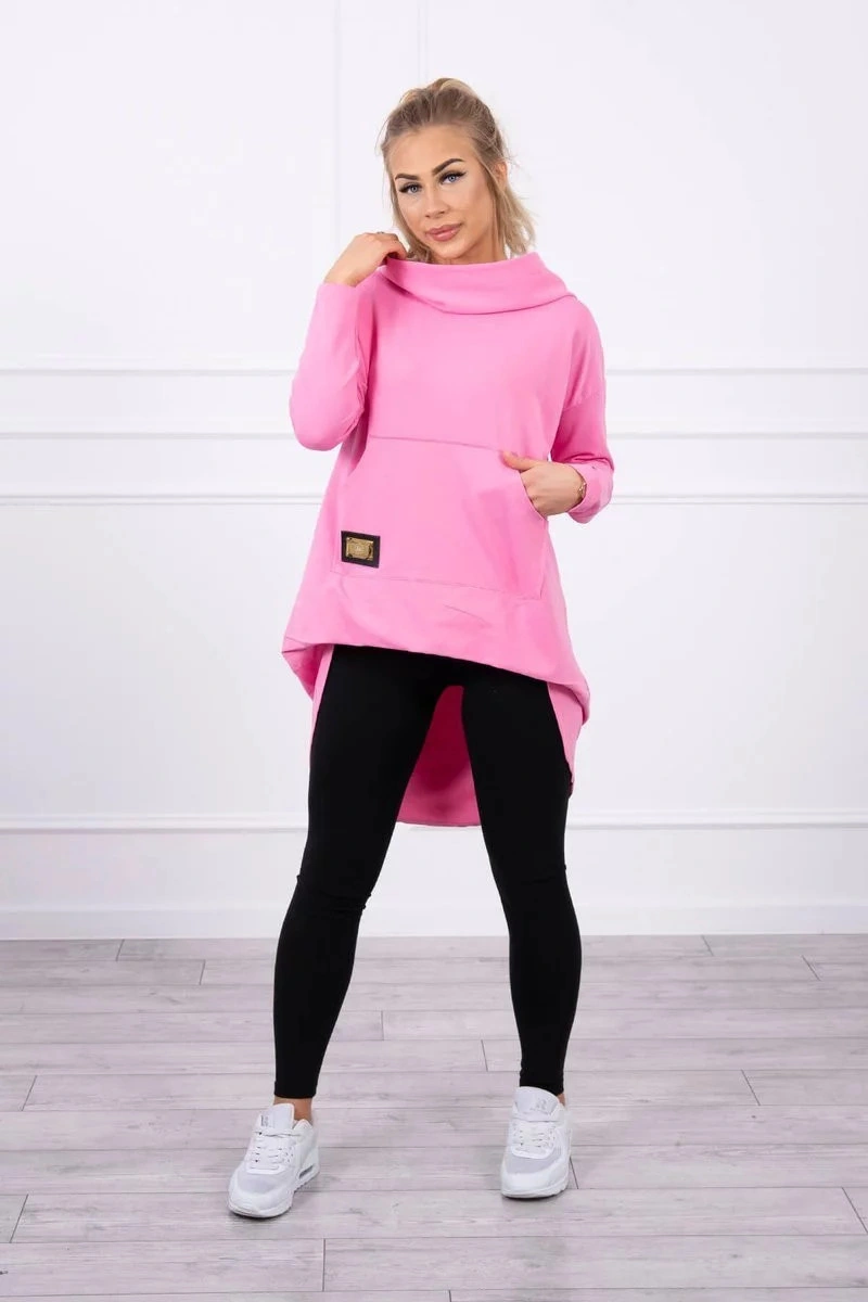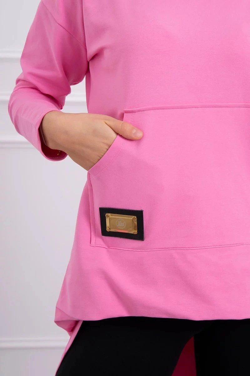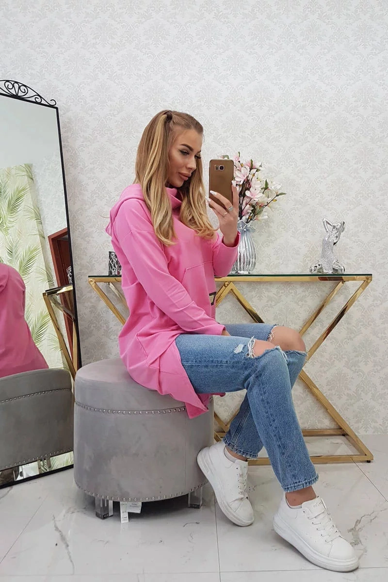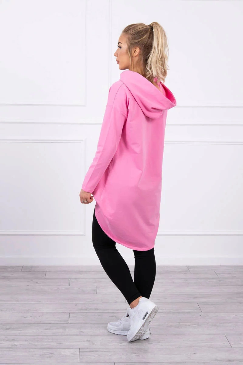 Popis Dámská prodloužená mikina s kapucí 9116 Růžová - K-Fashion