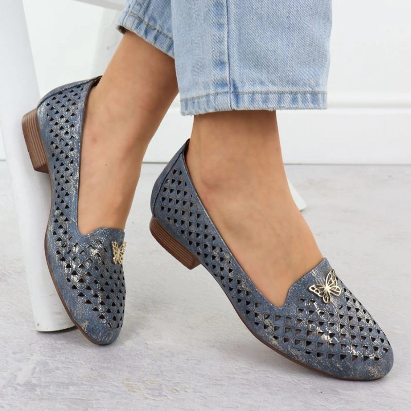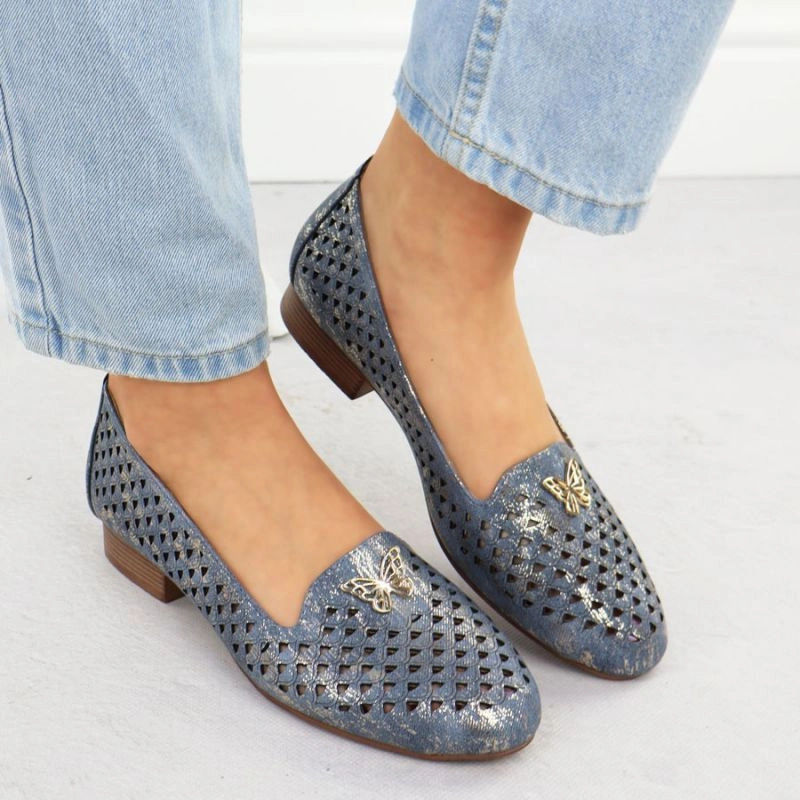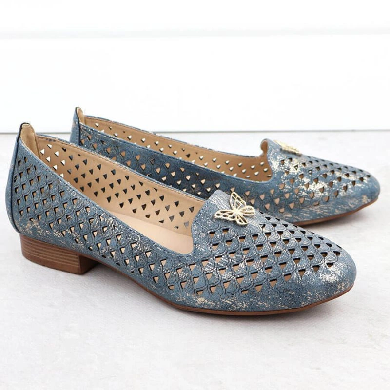 Popis Dámská prolamovaná obuv na nízkém podpatku modrá M.Daszynski SA222-3