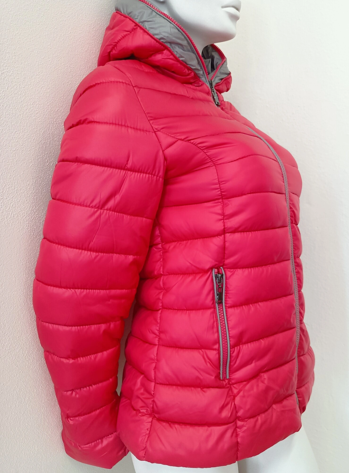 Dámská prošívaná zimní bunda střední délky, s neodepínací kapucí.
