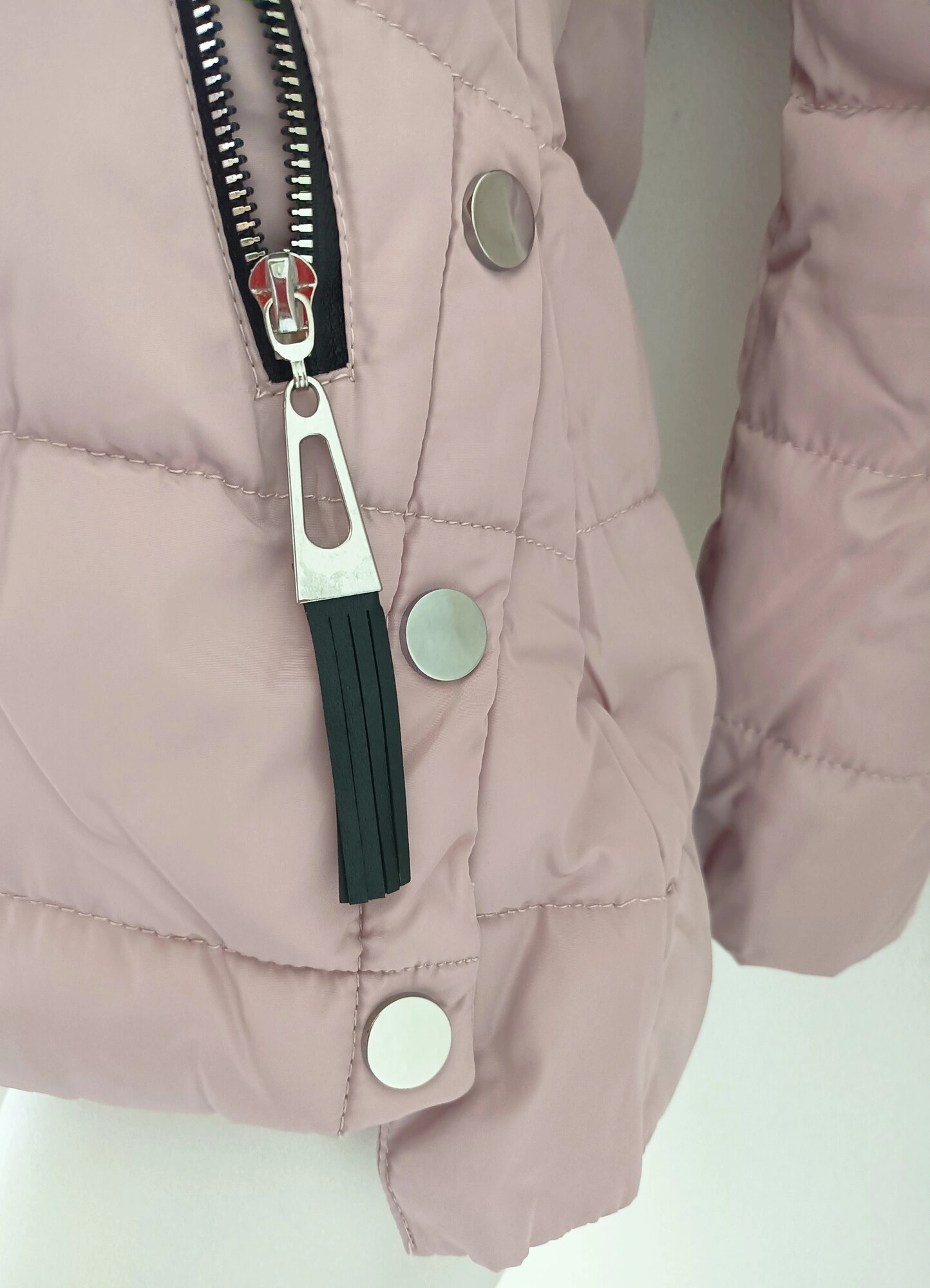Dámská prošívaná zimní bunda střední délky, s neodepínací kapucí.