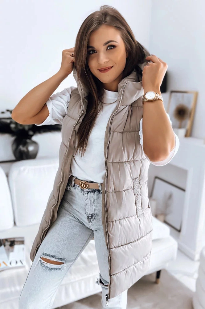 Prošívaná vesta trochu delšího střihu skvěle doplní podzimní styling, sportovní i ležérní. Má dvě kapsy, velkou, efektně vypadající kapuci a syntetickou výplň, která vás zahřeje v chladných podzimních a zimních dnech. Dostupné ve dvou barvách.
