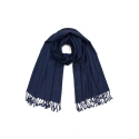 Šála je olemovaná třásněmi. Model je vyrobený z měkkého materiálu příjemného na dotyk. Jednoduchost šály je univerzální a nadčasová.