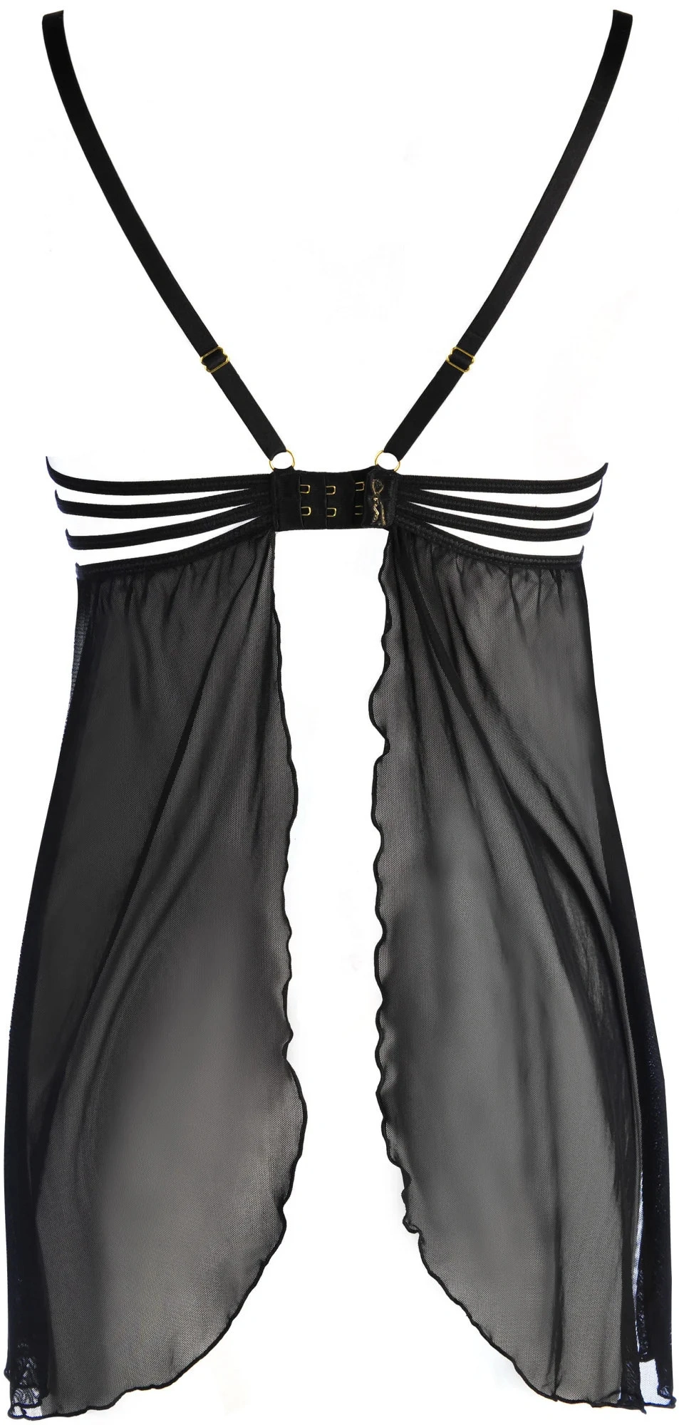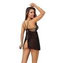 Splývavá a lehká košilka s vestavěnou krajkovou částí na poprsí je absolutním poutačem na úžasné chvíle ve dvou! Spodní část je vyrobena z jemného tylu, který obepne vaše tělo i smysly. Košilka se zapíná na dvouřadový háček, pod košíčky jsou zabudované zpevňující drátky. Do soupravy s tangy vyrobenými rovněž z tylu a krajky tohoto střihu.