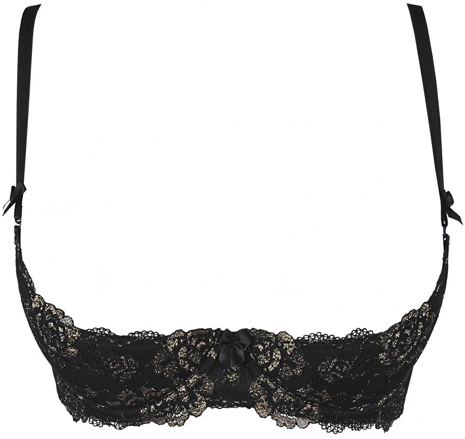 Staňte se královnou noci v naší push-up podprsence a ciťte se opravdu výjimečně. Tento fenomenální model s třpytivou zlatou krajkou na černém pozadí rozpaluje smysly a podněcuje představivost. Dokonale odhaluje poprsí a ukazuje celou jeho krásu. Model má boční velrybí kostice a drátek v košíčku, ramínka jsou odnímatelná a nastavitelná. Zapínání na dva háčky.