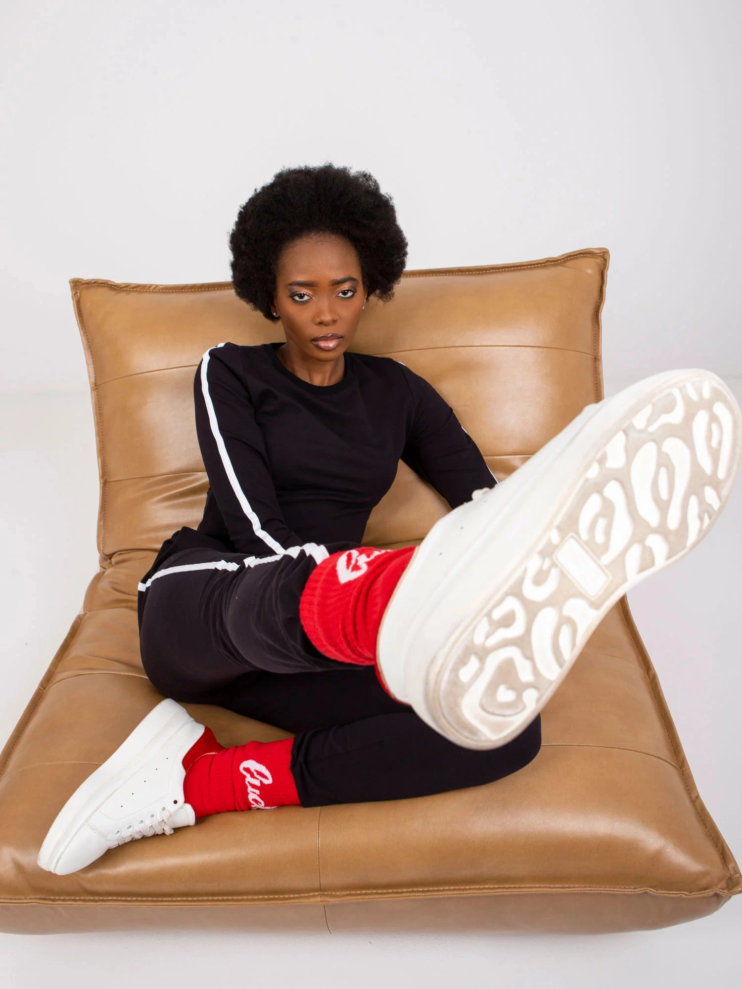 Rozměry soupravy ve velikosti S měřené na plocho: šířka v podpaží - 43 cm, délka halenky - 40 cm, délka rukávů - 57 cm, šířka v pase - 33 cm, délka kalhot - 99 cm.