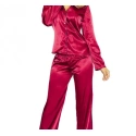 Klasické pyžamo z jemného saténu, které by nemělo chybět v žádném dámském šatníku. Halenka s dlouhými rukávy a knoflíky má na obou stranách půvabné praskliny. Je zdobena záložkou v kontrastní barvě a malou kapsou. Kalhoty mají mírně širší střih nohavic pro větší pohodlí. Boční strany nohavic zdobí pruh ze stejné vsadky jako ozdoby na halence. Termi je tradiční dámské pyžamo, které je díky svému klasickému střihu ideální i jako dárek.