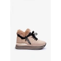 Dámská sportovní obuv byla vyrobena z ekologického semiše. Model usazený na platformě se zrcadlovým prvkem v zadní části. Zapínání na zip na vnější straně svršku a dodatečné šněrování. Měkká stélka zajistí pohodlné používání obuvi. Svršek je zdobený kožešinou. Uvnitř jsou boty zateplené přikrývkou na boty.