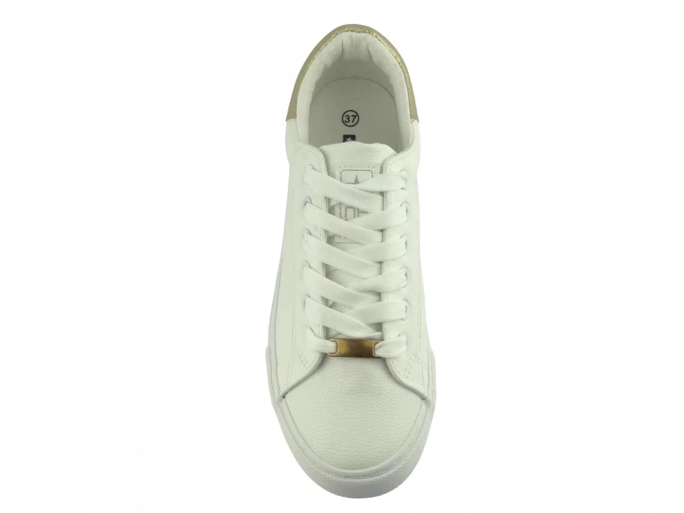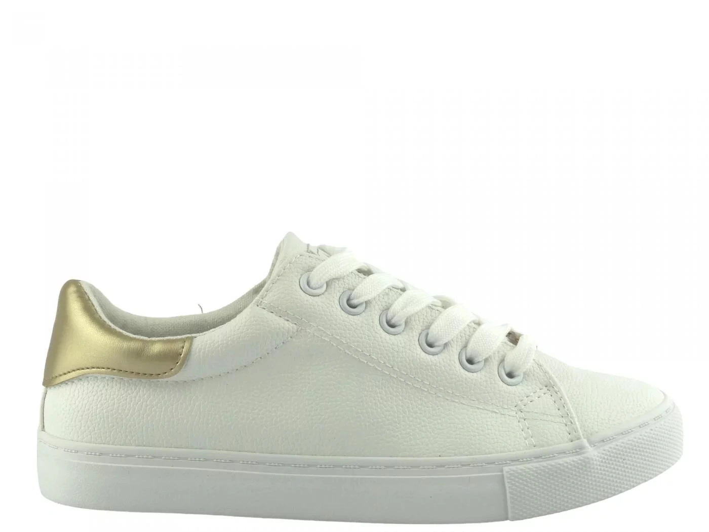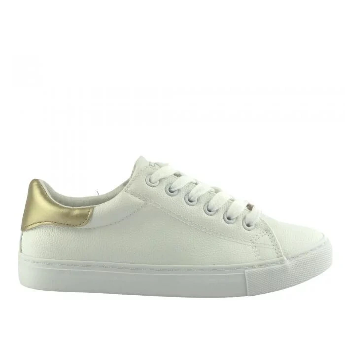 Klasické dámské tenisky z ekologické kůže. Stojí na gumové podrážce. Zaoblená špička. Klasický model se šněrováním. Měkká, materiálová stélka zajistí pohodlí při používání i během dne. Tento střih se bude skvěle hodit téměř ke každé stylizaci s kalhotami a šortkami. Nezbytná součást vašeho jarně-letního šatníku!