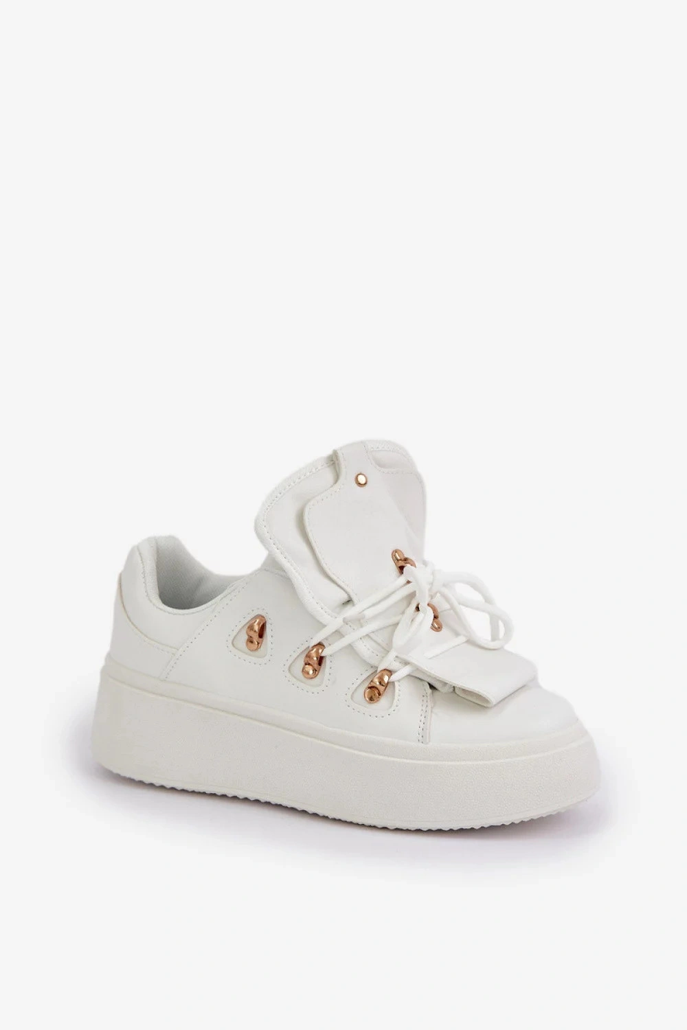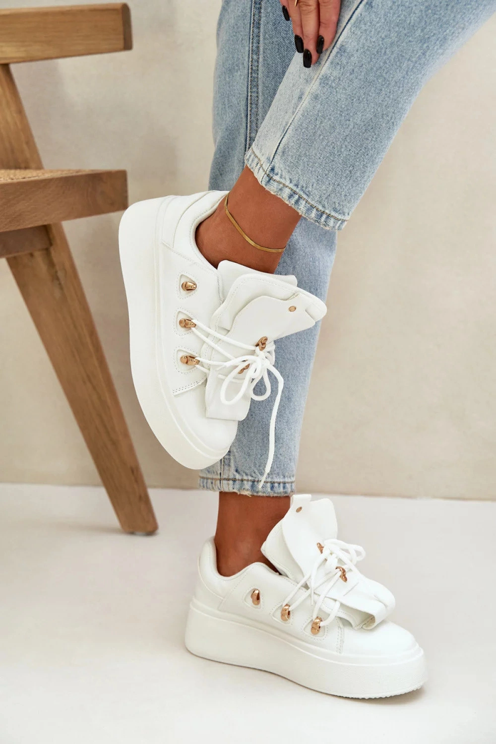 Dámské tenisky vyrobené z kvalitní ekokože jsou ideální volbou pro milovnice módních řešení. Umístěné na masivní platformě přidávají několik centimetrů na výšce, zároveň poskytují stabilitu a pohodlí při nošení. Vložka z měkké pěny zajistí pohodlí i při dlouhodobém nošení. Tento stylový střih skvěle doplní mnoho každodenních outfitů!