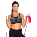 Dina je podprsenka pro speciální úkoly! Polstrovaná konstrukce založená na podpůrné kostici se osvědčí i v extrémních podmínkách. Košíčky jsou vyplněné tenkou jemnou pěnou a podšité síťovinou pohlcující vlhkost, což maximalizuje funkčnost a pohodlí podprsenky. Široké popruhy s otvíráním na zádech jsou podšité měkkou pěnou a záda jsou vyztužená stabilní recyklovanou tkaninou. Veškeré výztužné pásky jsou schované uvnitř, což podprsence dodává estetičtější vzhled. Design je v odstínu klidné námořnické modři, posetý ženskými barvami, a výstřih je dále zvýrazněn fuchsiovým lamów. S Dinou do toho dáte všechno!