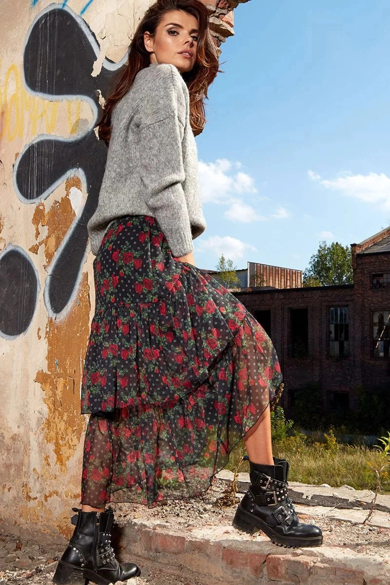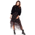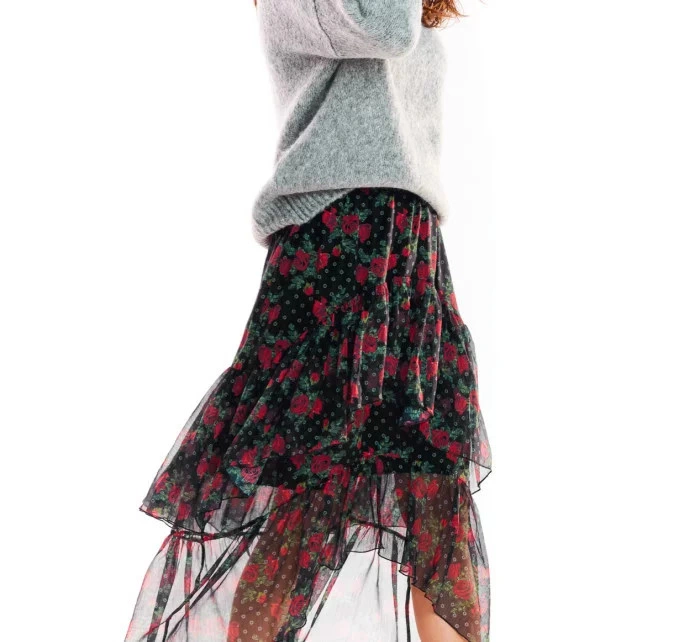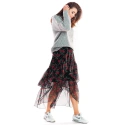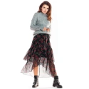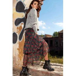 Tylová maxi sukně asymetrického střihu, vpředu kratší a vzadu delší. Vyrobeno z šifonu s originálními potisky. Sukně s podšívkou. Skvěle vypadá k těžkým zimním botám, hodí se také k holínkám a sportovní obuvi. Ideální pro mnoho příležitostí. Sukně s elastickou podšívkou. . Materiál: 100% polyester + podšívka 95% polyester, 5% elastan