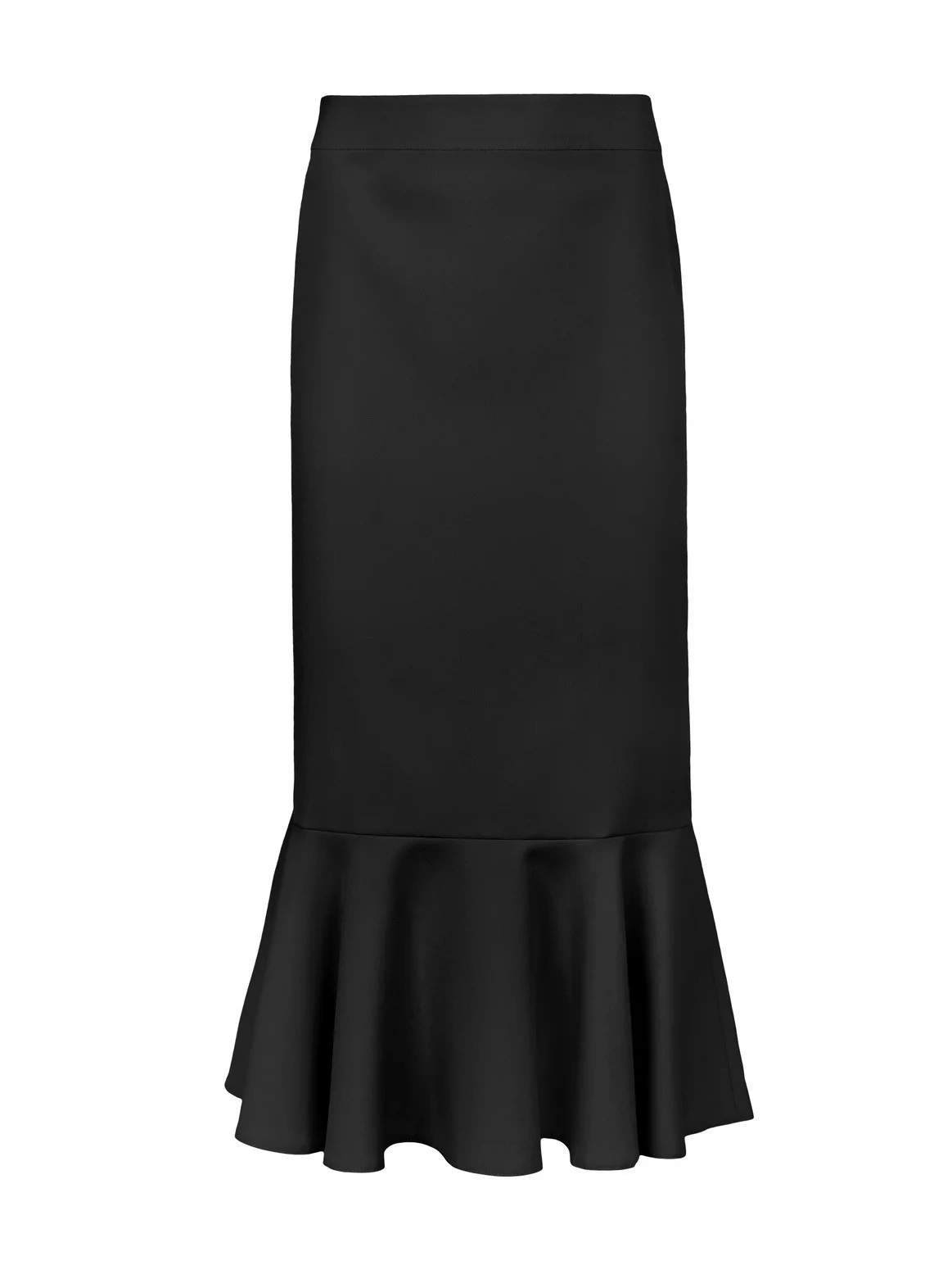 Tato sukně je jedinečná. Má tužkový střih tvarující postavu a ozdobný volánkový spodní lem, který dodává šmrnc.