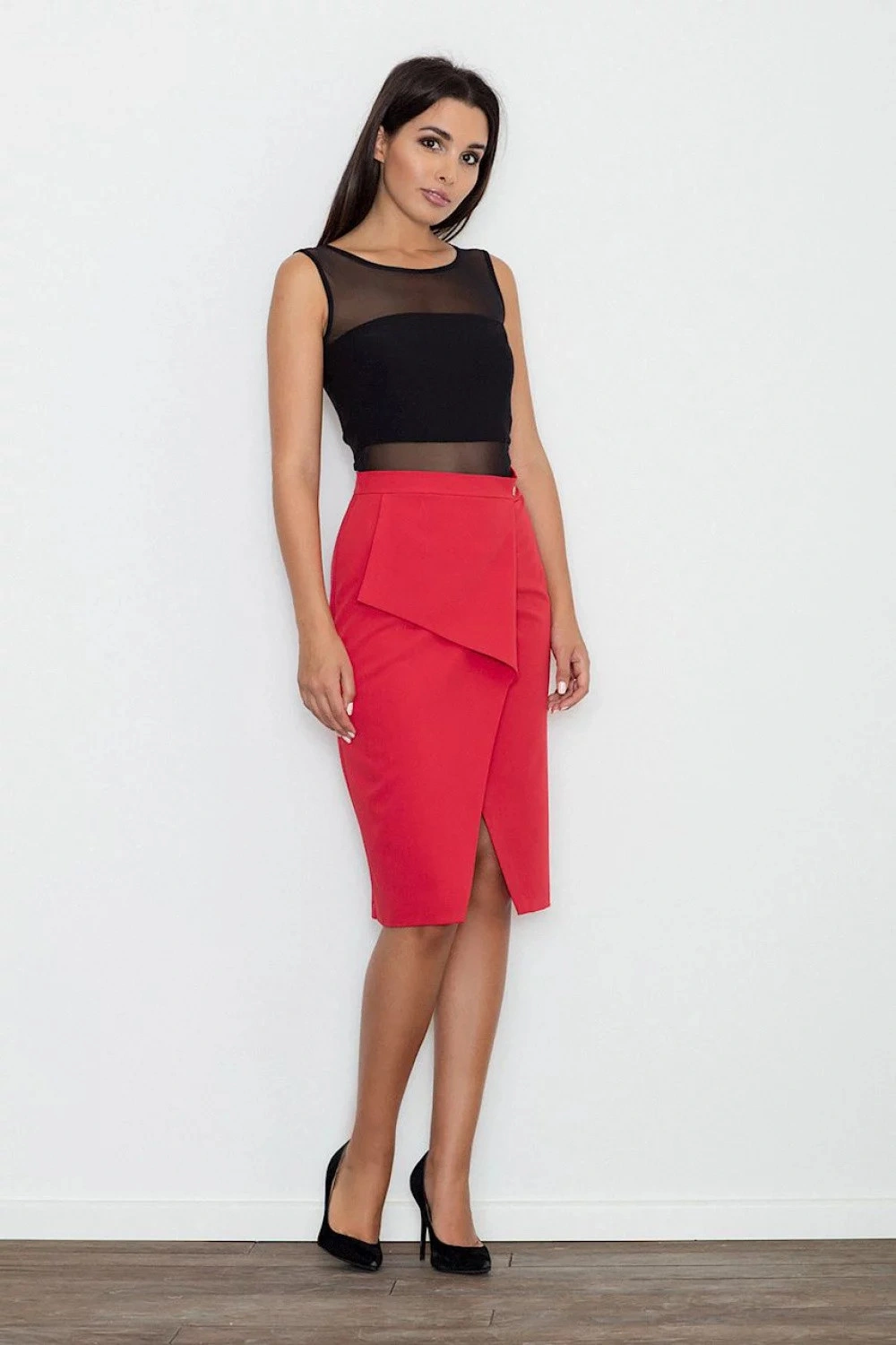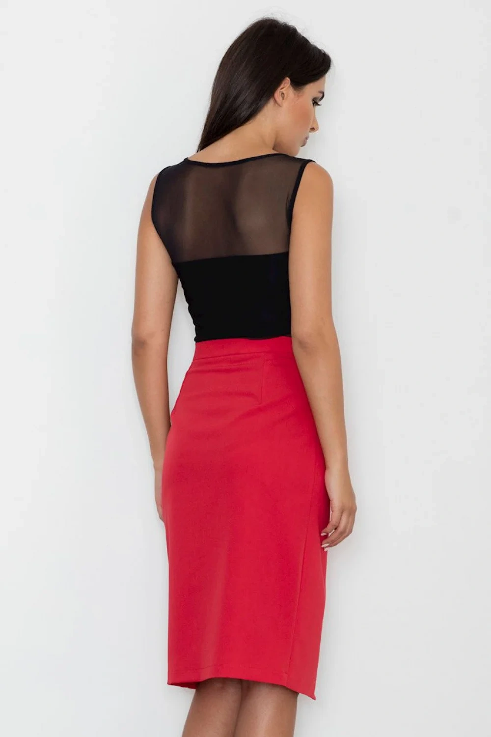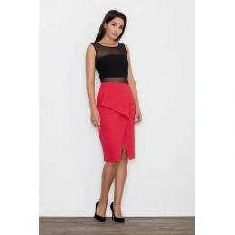 Dámské společenské šaty EMAMODA s dlouhými rukávy červeno-černé - Červená / L - EMAMODA