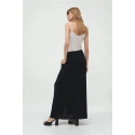 Černé dlouhé smyslné šaty bez rukávů, zavazované na ramenou, s velkým hlubokým výstřihem. Horní část