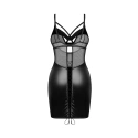 Výjimečně smyslná souprava, ve které se odvážný lesklý povrch snoubí s jemnou síťovinou. Košilka krásně zdůrazňuje siluetu – její přiléhavý střih obepíná tělo, zatímco průsvitné vsadky a ramínka dodávají odvážný nádech. Kosticové košíčky zdůrazňují poprsí a ladící tanga dotvářejí celkový vzhled a vytvářejí soupravu plnou touhy.