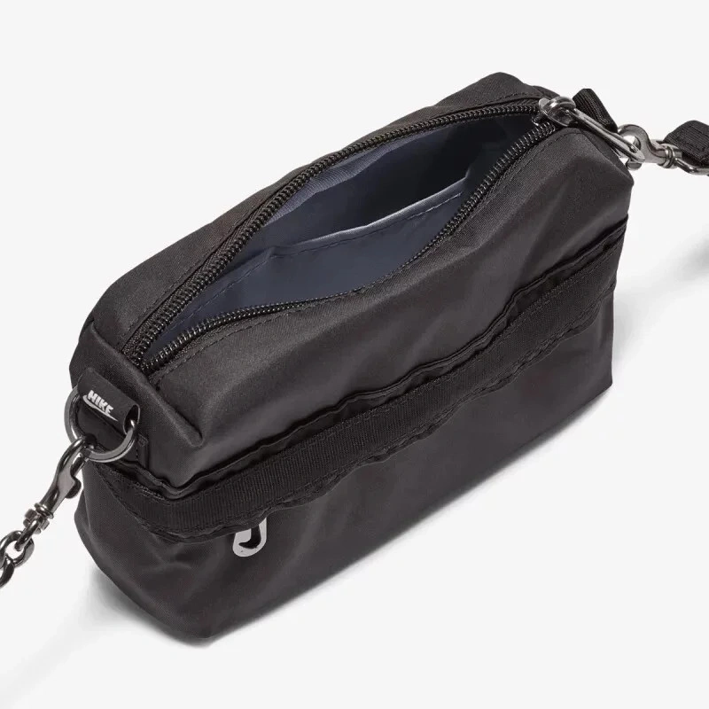 Dvě kapsy na zip usnadňují organizaci, zatímco saténová podšívka a zipy s logem Swoosh vylepšují vzhled.