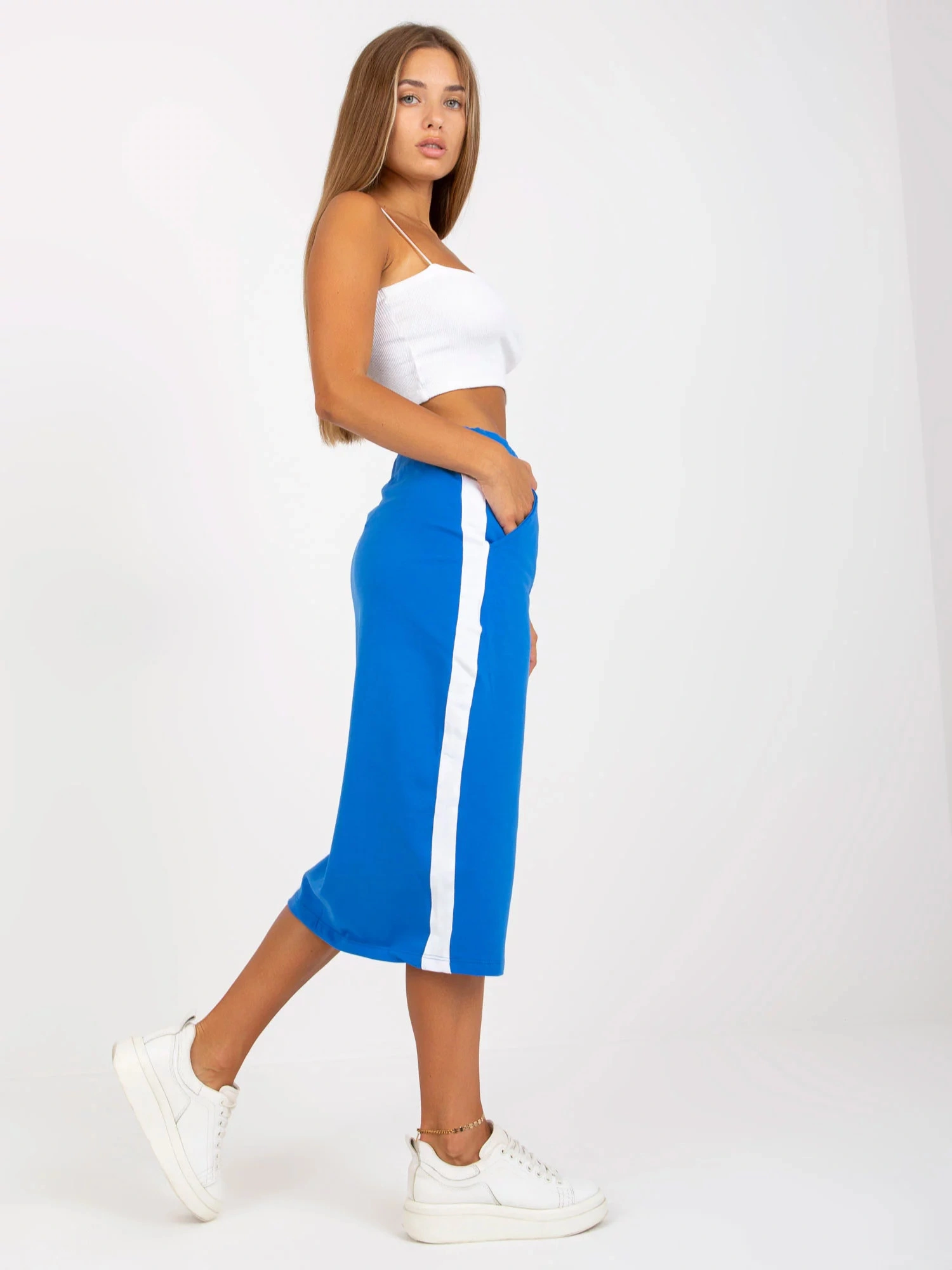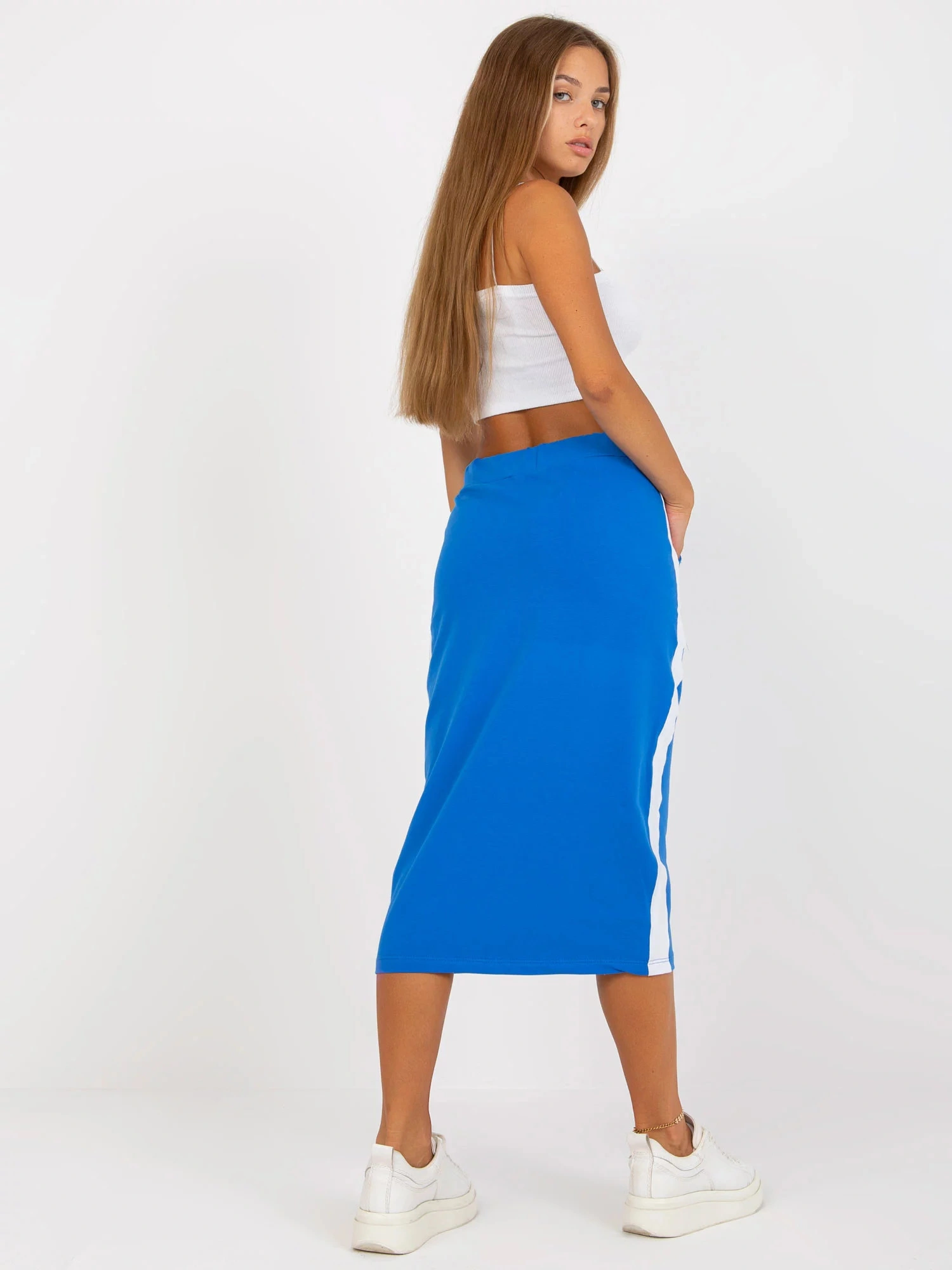 Tmavě modrá tepláková midi sukně basic s lemováním od RUE PARIS .