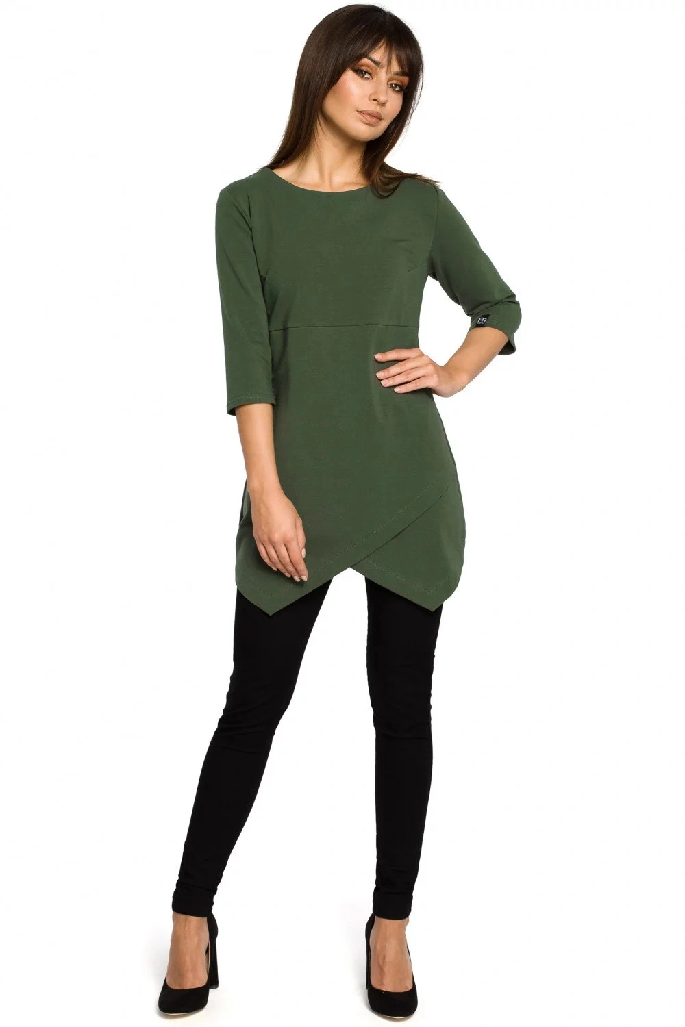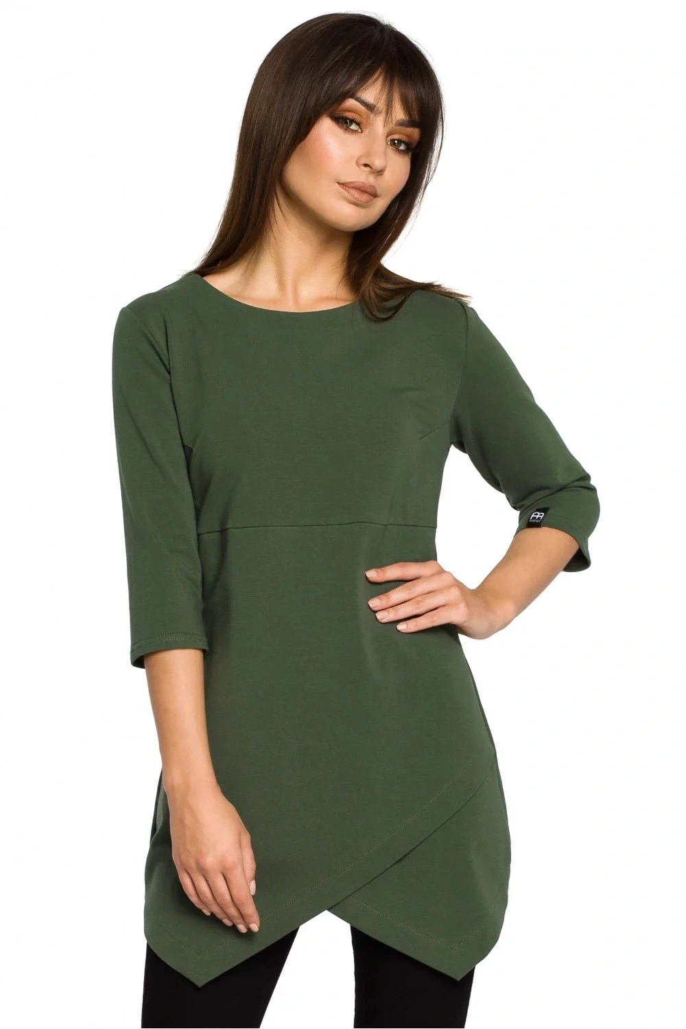 Složení materiálu: 60 % polyester, 35 % viskóza, 5 % elastan. způsob mytí: ruční mytí Modelka má na