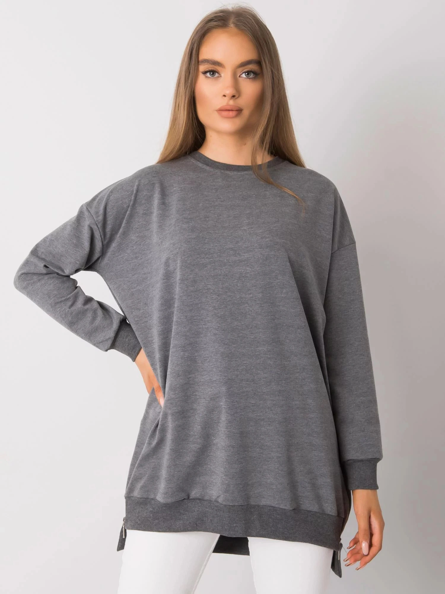 Tmavě šedá melanžová dámská tunika se zipy.
