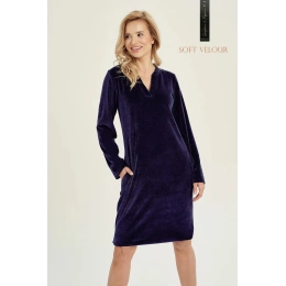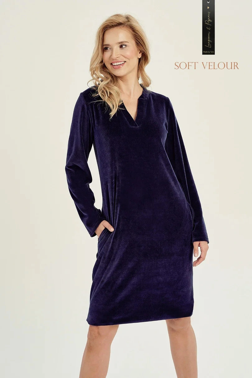 Dámská tunika s dlouhými rukávy z hřejivého veluru a s výstřihem 3028 Lauren TARO - tmavě modrá barva - je vyrobená z velmi kvalitní bavlny - velur - s dlouhými rukávy - s kapsami