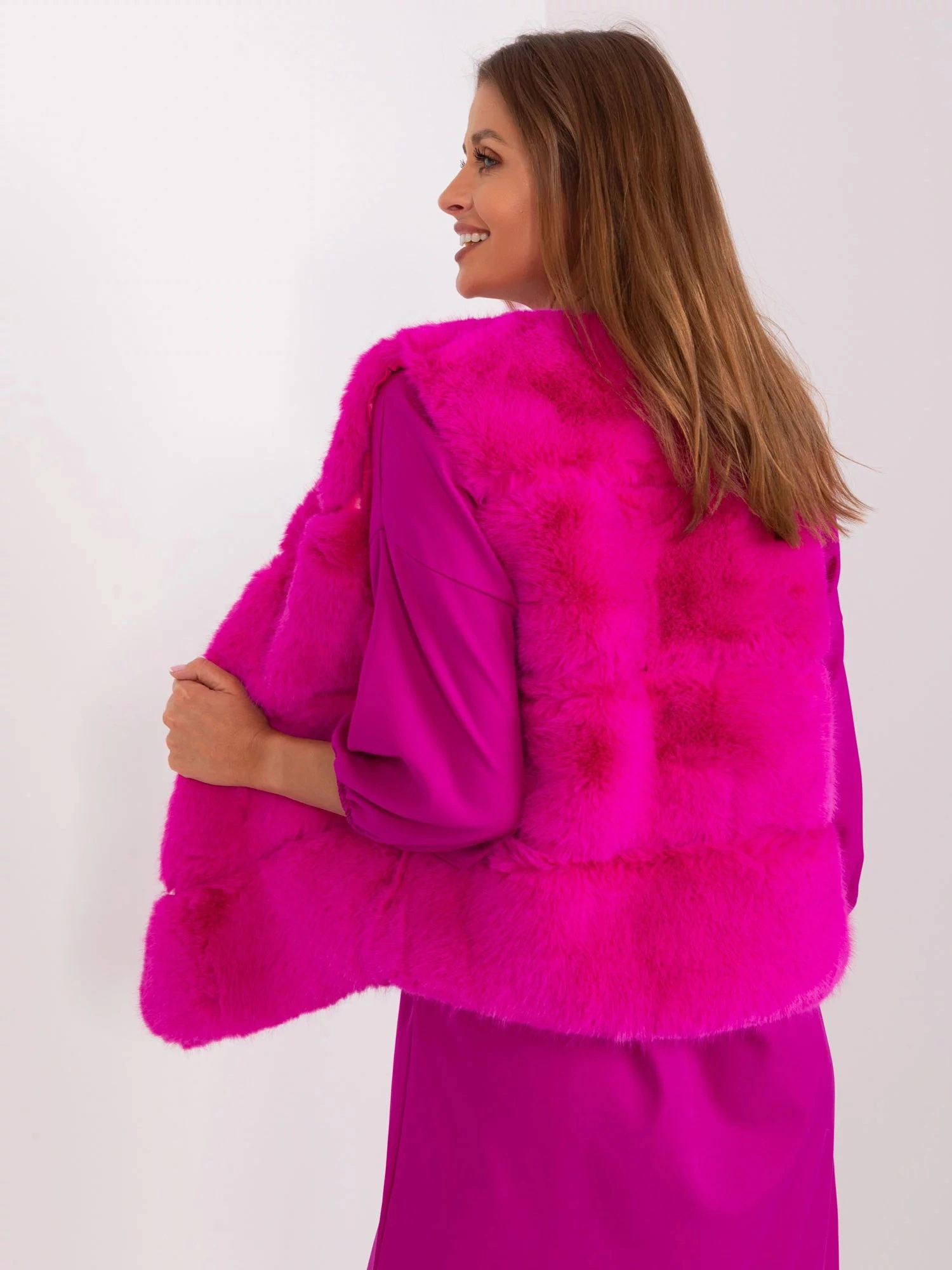 fuchsiová vesta s kožešinovou podšívkou .