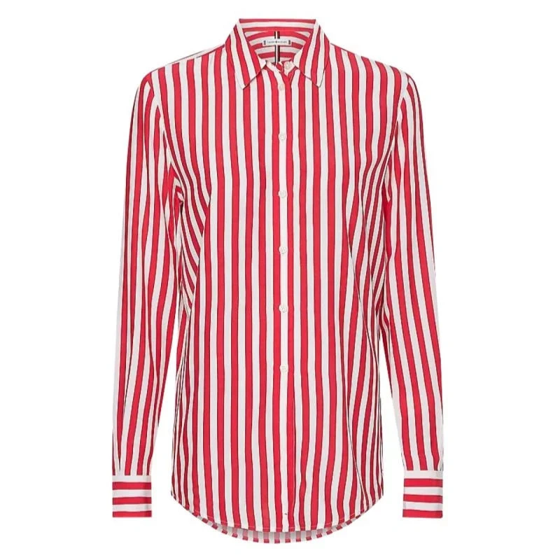 Dámská viskózová košile W WW0WW31990 Červeno-bílá - Tommy Hilfiger
