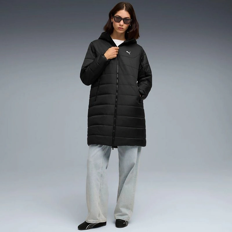 Dámská bunda Puma ESS Hooded Padded Parka black 685232 01. Dámská bunda Puma s prodlouženým střihem je ideální pro každodenní nošení. Prošívaná konstrukce se syntetickou výplní. Tepelnou izolaci zajišťuje technologie WarmCell. Bunda byla na tkanině opatřena vodoodpudivou úpravou, která se v kombinaci s technologií RainCell stará o sníženou absorpci vlhkosti. Regular střih s dvoucestným zipem. Neodnímatelná kapuce bez možnosti regulace. Technologie WindCell. Dvě boční kapsy na zip. Technické údaje: - Vnější tkanina: 100% polyester - Podšívka: 100% polyester - Výplň: 100% polyester - Bunda vyrobena z minimálně 90 % z recyklovaných materiálů.