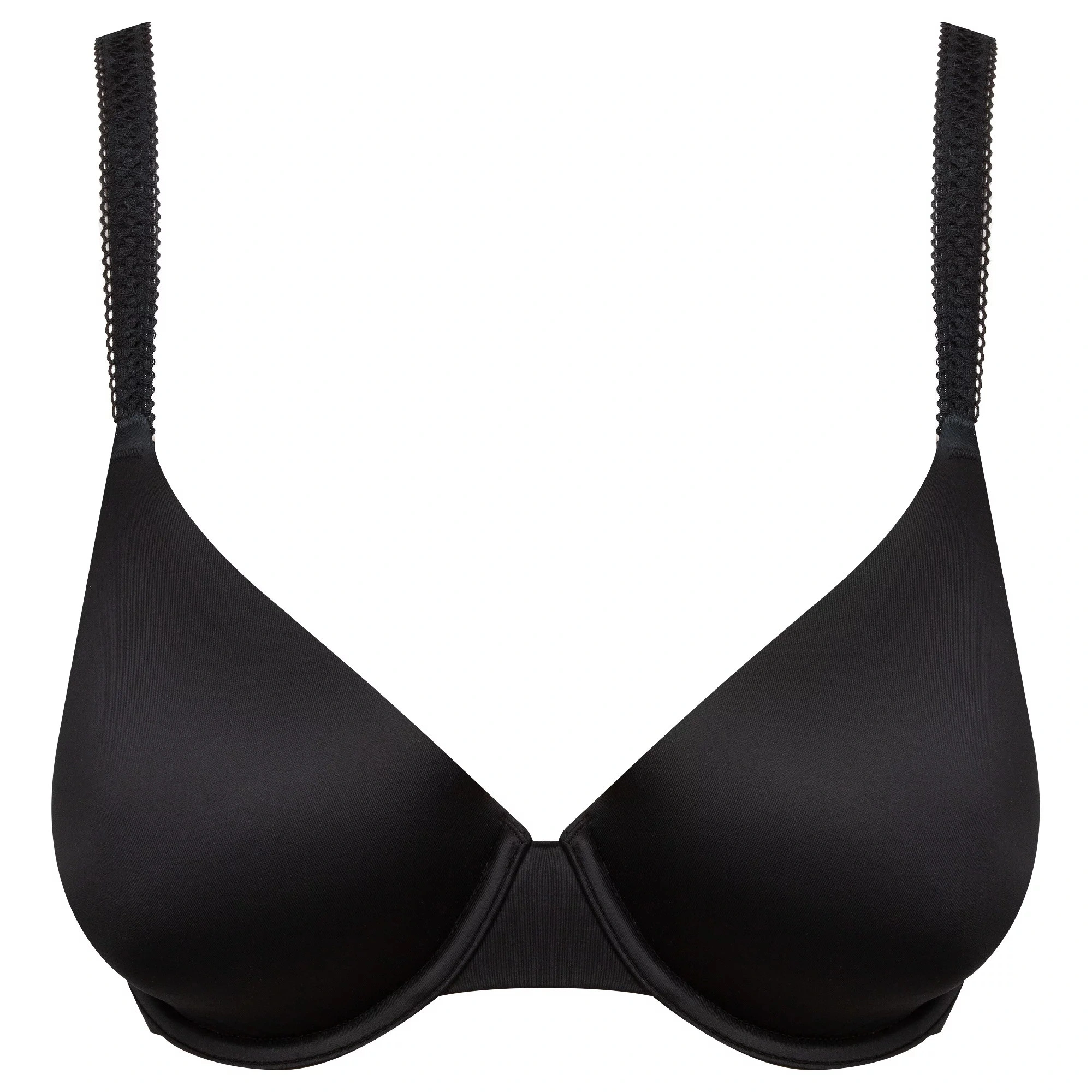 Podprsenka Calvin Klein s koticemi a výztuží je hladká a vhodná pod přilnavý oděv. Má nastavitelné ramínka a zapínání na háčky.