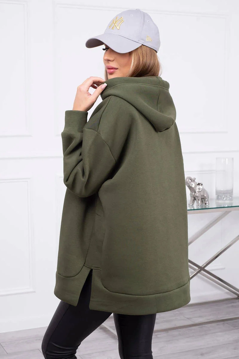 Popis Dámská zateplená mikina s kapucí 9380 Khaki zelená - K-Fashion