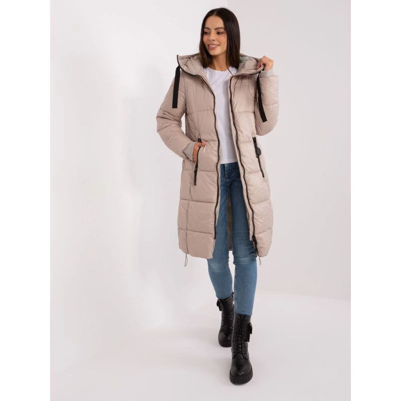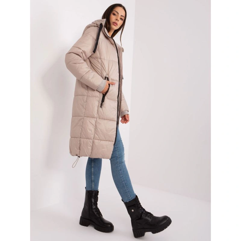 Dámská zimní bunda béžová prošívaná SUBLEVEL s délkou ke kolenům (D50048X44518B3)