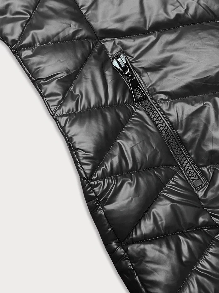 Bunda je zateplená syntetickou péřovou výplní, má dvě kapsy a zapíná se dvousměrným zipem. Model má kapuci olemovanou kožešinou. Zatímco kapuci není možné odepnout, kožešinu lemující kapuci odepnout lze. Na koncích rukávů jsou skryté stahovací lemy. Bunda má délku do poloviny stehen.