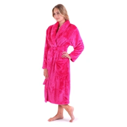 Lehoučký hebký a hřejivý župan v temně modré barvě. Župan má šálový límec, dvě kapsy, pásek a klasickou délku.