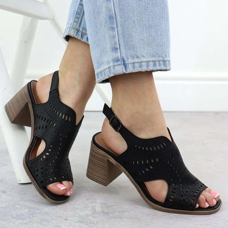 Popis Dámské ažurové sandály na podpatku černé Jezzi 24125