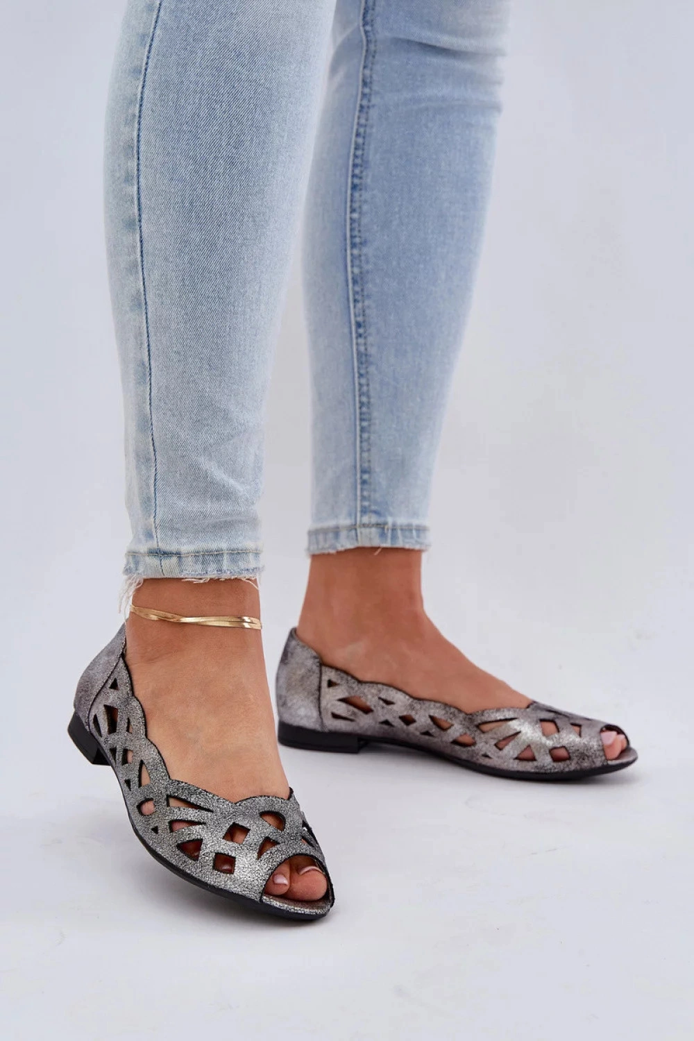 Baleríny značky Jezzi jsou elegantní a pohodlnou volbou na teplé dny. Vyrobené z ekokožešiny. Průsvitný svršek jim dodává lehkost a moderní charakter. Odkryté prsty dělají z bot ideální volbu na jaro a léto. Zpevněná patka zajišťuje stabilitu a pohodlí, a kožená stélka pečuje o pohodlí nošení po celý den. Plochý podpatek zaručuje pohodlí každý den, čímž tyto baleríny dělají skvělou volbu pro každodenní stylizace.