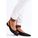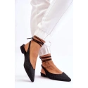 Tyto módní baleríny s otevřenou patou a špičatou špičkou byly vyrobeny z textilního materiálu. Svršek je navíc zdoben kamínky. Měkká stélka z ekokůže zajistí pohodlí při nošení. Baleríny mají plochý podpatek a zavazování kolem lýtka. Skvělý model pro teplejší dny!