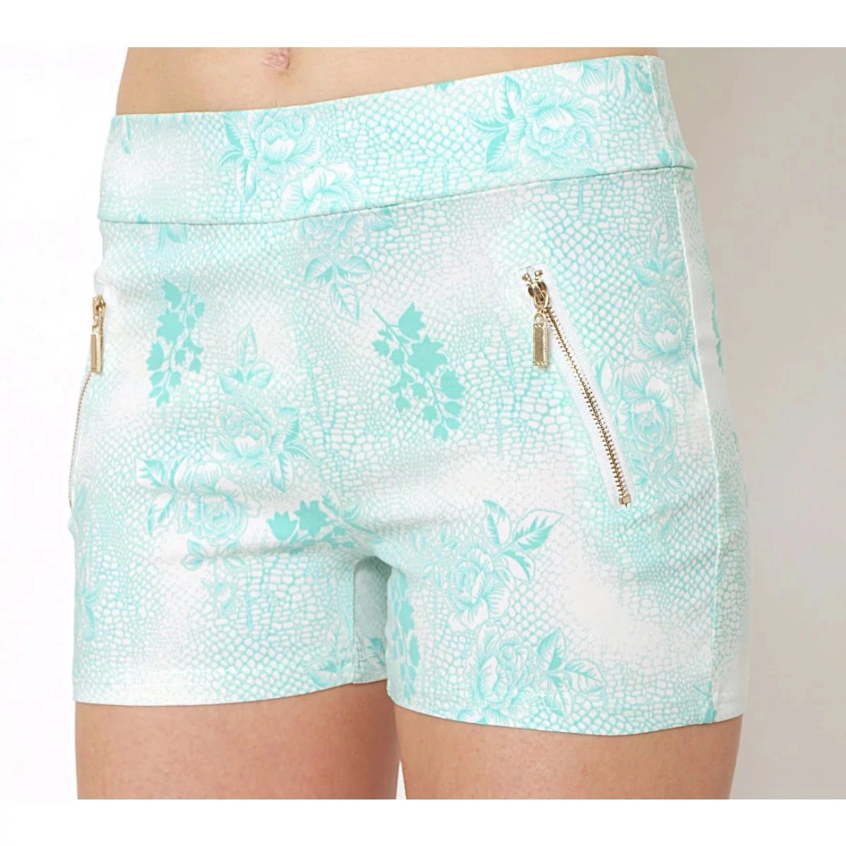 Dámské bavlněné elastické šortky BLACK&FISH zdobené zipy korálová/mint/béžová