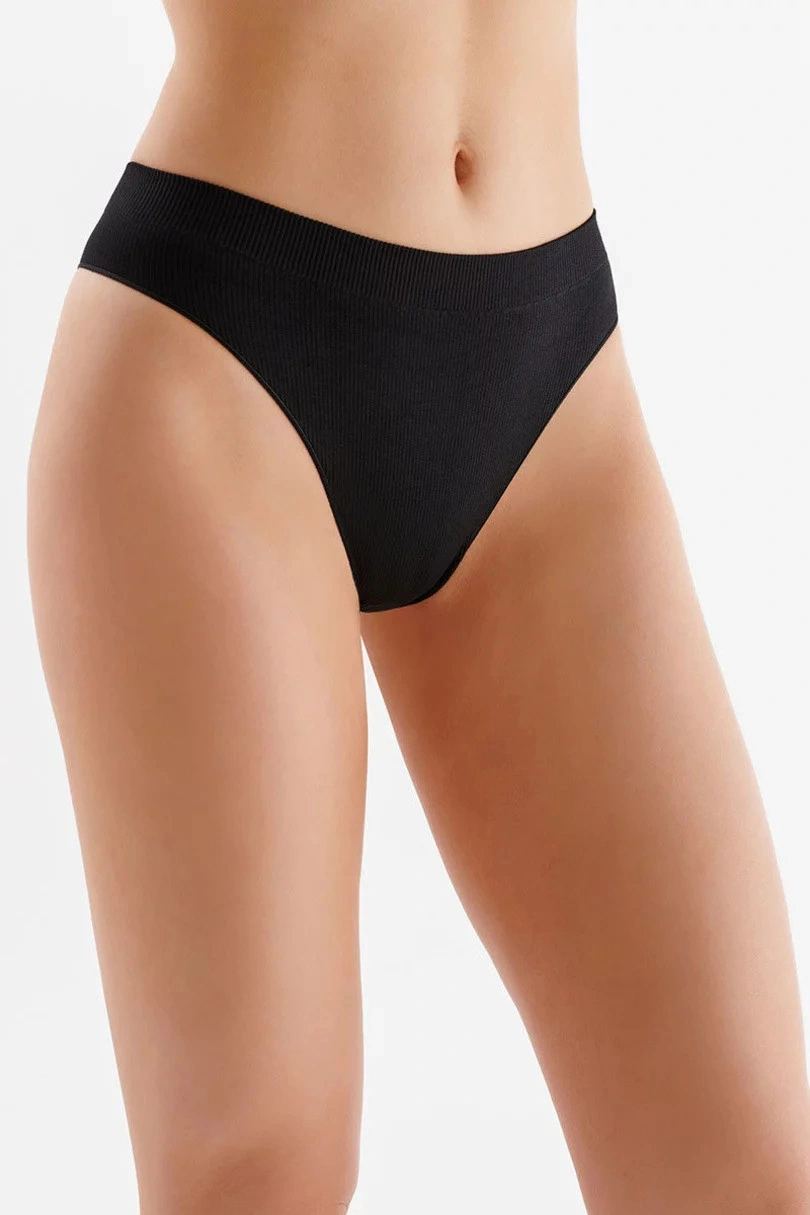 Brazileské bezešvé kalhotky netlačí na tělo, dokonale se přizpůsobí ženským křivkám a jsou příjemné na dotek. Pruhovaná pletenina odkazuje na módní trendy. Vykrojený lem kalhotek pomáhá zdůraznit přirozený tvar hýždí. Zakončení širokou netlačící gumičkou zajišťuje pohodlné nošení. inovativní antibakteriální klín zajišťuje hygienické používání.