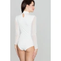 Dámské body z příjemné, mírně elastické viskózy. Řez jemně přilne k tělu. Dlouhé rukávy ze síťoviny mu dodávají moderní charakter. Vysoký stojáček pod krkem, slzička na zádech a pohodlné zapínání na zátylku. Sexy a zároveň elegantní návrh pro moderní ženu, která si cení pohodlí a komfortu.